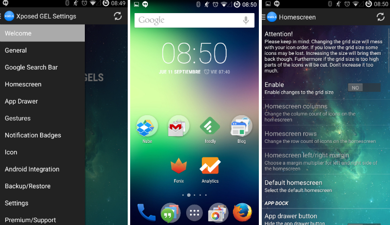 Las opciones de personalización que ofrece XGELS para Google Now Launcher son muy amplías: cambios generales, en el escritorio, el drawer, gestos, permite colocar packs de iconos y un largo etcétera. Por supuesto, para utilizarlo hay que ser root, tener instalado Xposed Framework y descargar el módulo desde su repositorio o directamente desde Play, gratis en ambos casos.