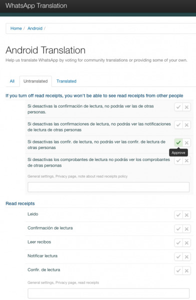 Y por otro lado, en el canal de traductores de Whatsapp podemos ver como se han apresurado a tener preparadas las traducciones para incorporar dicha función.
