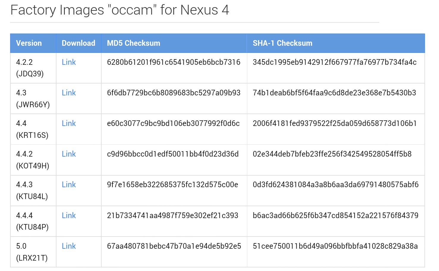 Imagen de fábrica de Android 5.0 Lollipop LRX21T para Nexus 4