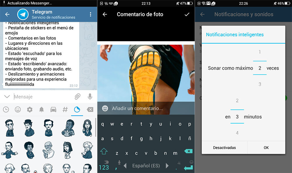 Telegram 2.8 incluye en su última actualización muchas novedades: notificaciones inteligentes, comentarios en fotos, nuevos estados, pestaña de stickers...