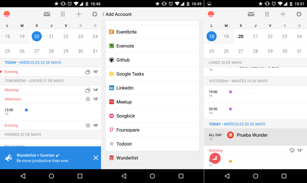 Wunderlist se integra en Sunrise Calendar