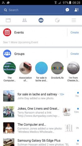 Con constantes actualizaciones, Facebook prueba una nueva organización de sus secciones en la app para Android dando mayor peso a los grupos y eventos.