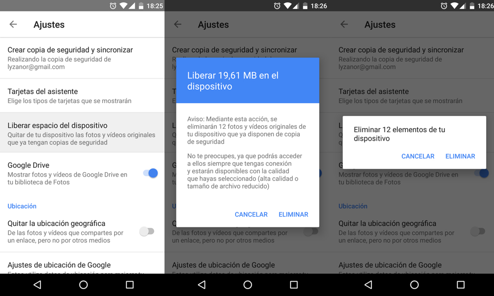 Consigue más espacio en Google Fotos borrando las fotos que ya se hayan realizado copias de seguridad. Buen truco.