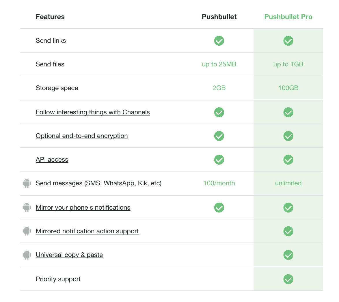 ¿Cuánto costará Pushbullet Pro? Hay dos opciones, por un lado 4,99$ al mes y otra opción de 39,99$ al año. Después de dos años, los creadores de la aplicación han decidido que su programa es suficiente maduro como para requerir una cuenta de pago. Afortunadamente, también se mantiene la opción gratuita y sigue siendo tan útil como siempre.