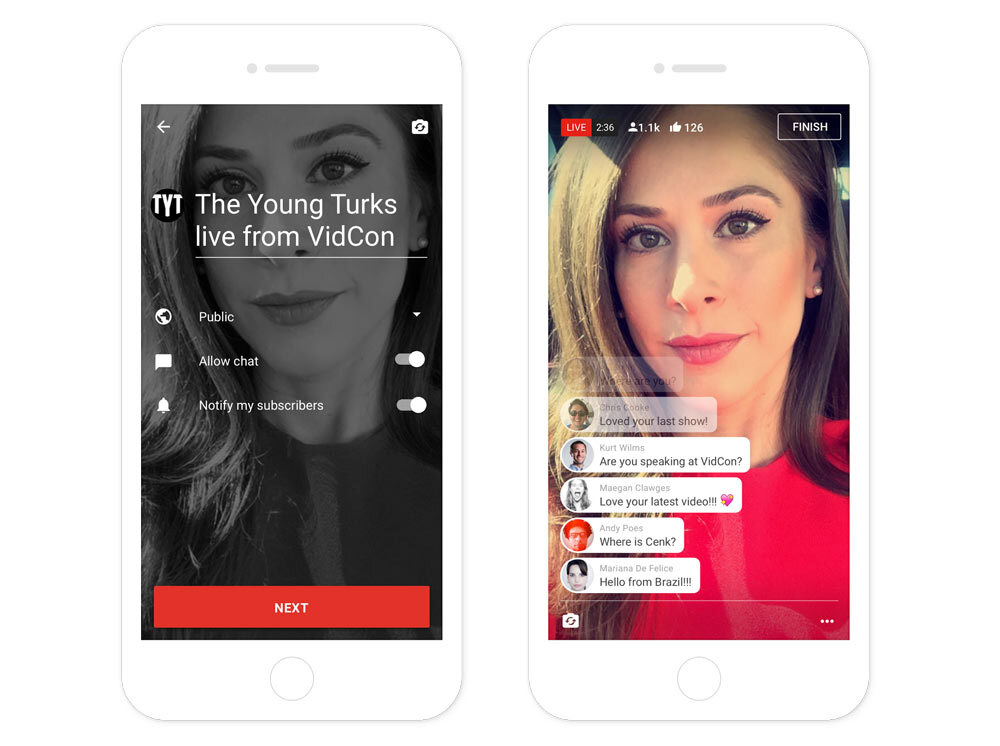 YouTube activará la emisión en directo de manera progresiva empezando con los YouTubbers más conocidos para llegar después al resto de público. The Young TurksAIB, Platica Polinesia, SacconeJolys y Alex Wassabi son los primeros canales que ya disfrutan de la emisión en directo dentro de sus aplicaciones móviles.