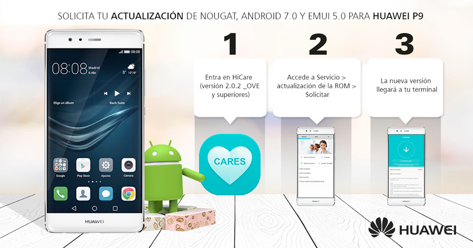 Huawei ha anunciado que ya se puede actualizar el Huawei P9 a Android 7.0 Nougat de forma oficial en España mediante su aplicación HiCare.