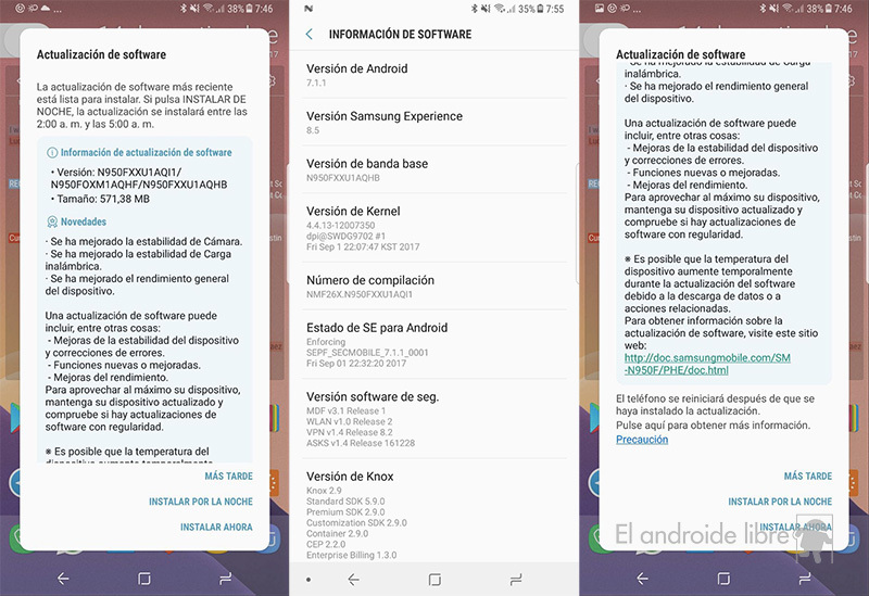 El firmware tiene como código N950FXXU1AQI1 y no aporta sustanciales diferencias.