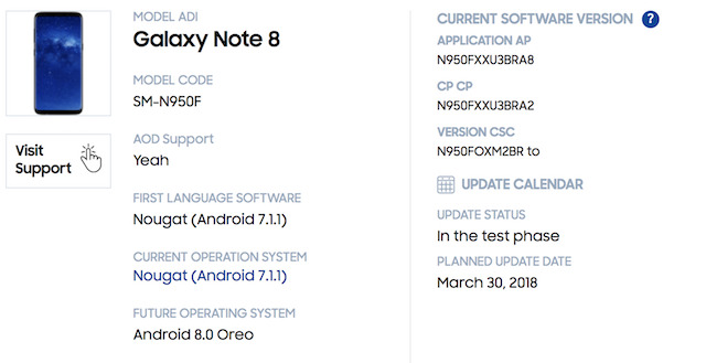 El primero en recibir la nueva versión será el Note 8 que deberá esperar al penúltimo día de este mes, el 30 de marzo, para recibir la actualización.