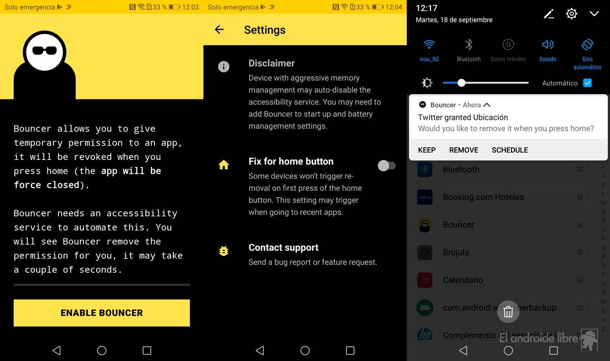 Bouncer es una aplicación que te permite asignar permisos temporales para que las apps no se excedan con los accesos. Una manera muy cómoda de controlarlas.