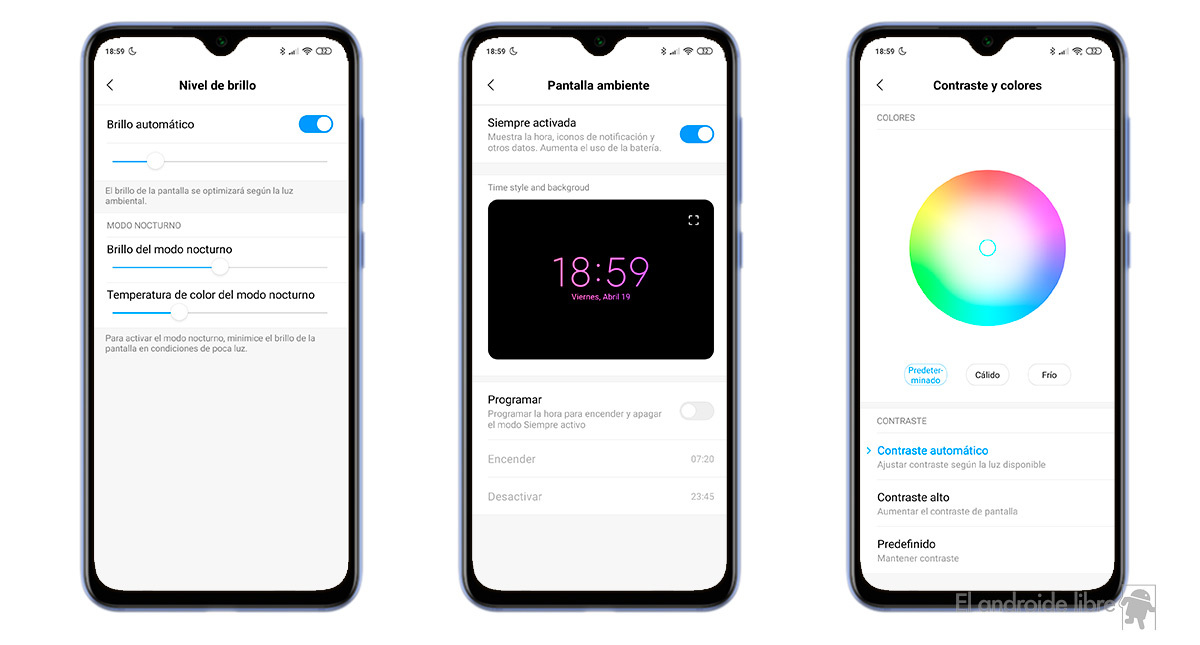 Algunos terminales de Xiaomi la usan, como el Xiaomi Mi 9 SE que analizamos. Además, este terminal tenía una opción para personalizar esta Pantalla Ambiente con colores y diseños varios. También nos permitía programar la hora a la que se mostraría, por si no queremos que la pantalla del móvil esté activa de noche.