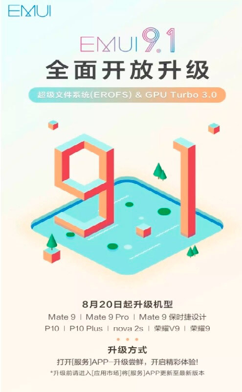 Entre las mejoras de EMUI 9.1 la empresa destaca el nuevo sistema de archivos EROFS y la presencia de GPU Turbo 3.0, que mejora el rendimiento de los móviles con ciertos juegos.