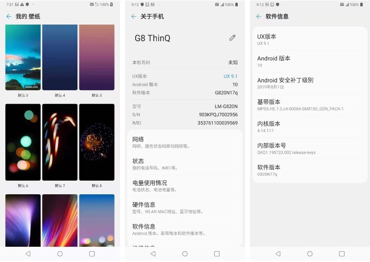 Las capturas se encuentran en coreano, país de origen de LG y donde es de esperar que llegue primero la actualización. En estas capturas se ve información en los menús del sistema, los cuales cambian el diseño respecto a la versión anterior. Se observa la versión de Android y de la capa de personalización.