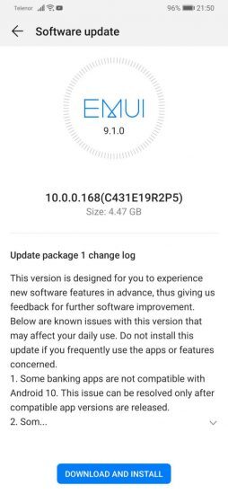 Así lo cuentan en Huawei Central, y es que los Huawei P30 y P30 Pro actualizados a Emui 9.1 están comenzando a recibir una actualización con el número de versión 10.0.0.168, versión que ocupa 4 GB.