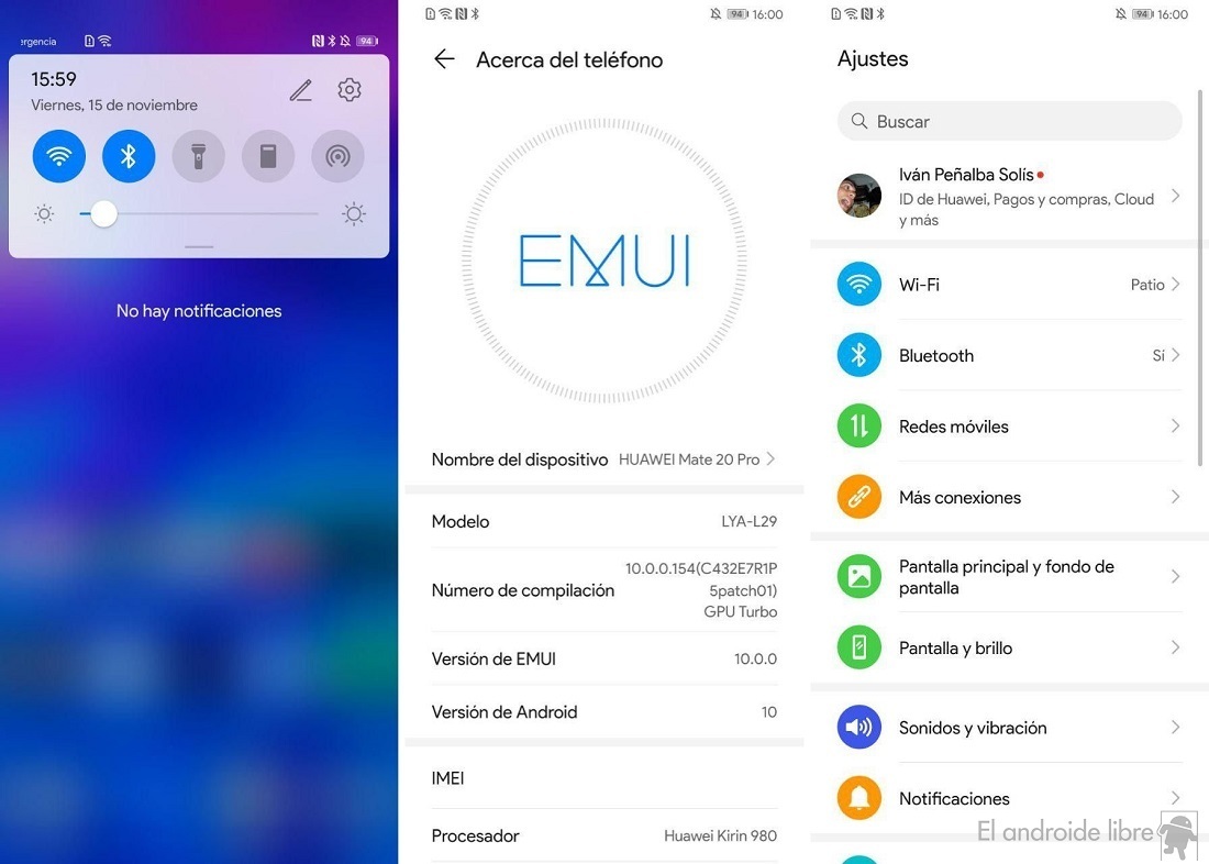 La actualización se está desplegando actualmente en Europa mediante una OTA, como es habitual. Gracias a ella, los usuarios van a poder disfrutar de Android 10 con EMUI 10 en sus Huawei Mate 20 o Mate 20 Pro (en el caso de las capturas es el modelo Pro). Una actualización que deja una serie de cambios en los teléfonos.