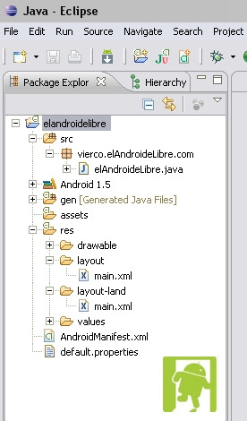 ¿Para qué sirve esto? Cuando ejecutemos nuestra aplicación y rotemos horizontalmente la pantalla, si el programa detecta que existe una carpeta llamada “layout-land” en vez de rotar el main.xml original (pudiendo perder la configuración para que encaje en la pantalla) cargará el main.xml que esté dentro de “layout-land”.