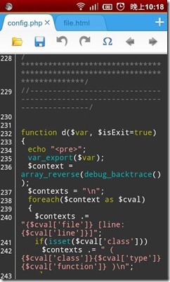 Un editor enfocado a los webmasters. Soporta CSS, PHP, Javascript y HTML. Soportando además múltiples funcionalidades: coloreado de código, autocompletar, deshacer (Ctrl + Z), teclas virtuales para las frases más típicas, esquema en dos colores, vista adaptada para tablets y muchos más.