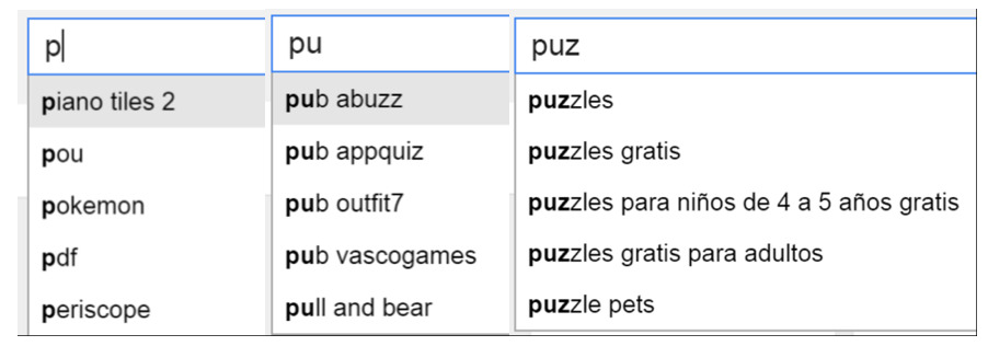 El propio Google Play os da una idea sobre ciertos términos buscados. Ya con sólo escribir PUZ, Google Play nos propone: