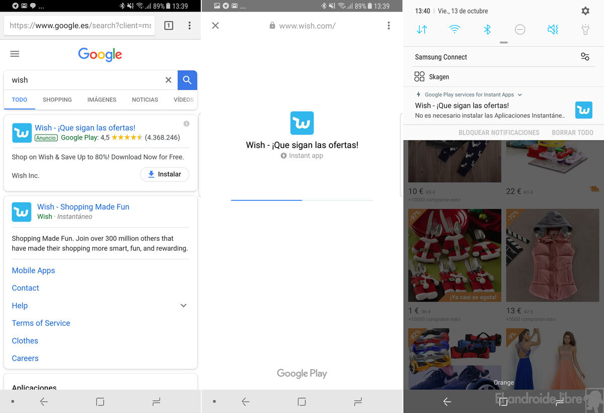 Las Instant Apps son un invento de Google para evitar justo esto: nos permite probar aplicaciones sin tener que instalarlas antes. Funcionan comprobando a través de Google Play cada vez que pulsamos un enlace. Si el sitio al que vamos tiene una aplicación instantánea, cargará en vez de la web a la que queríamos acceder.