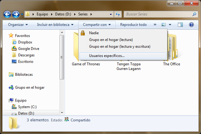 Con esto nuestra carpeta esta lista para siempre. Estará compartida en red y podremos acceder a ella, ver y modificar sus archivos desde cualquier otro PC y evidentemente desde nuestro Android, como veremos a continuación.
