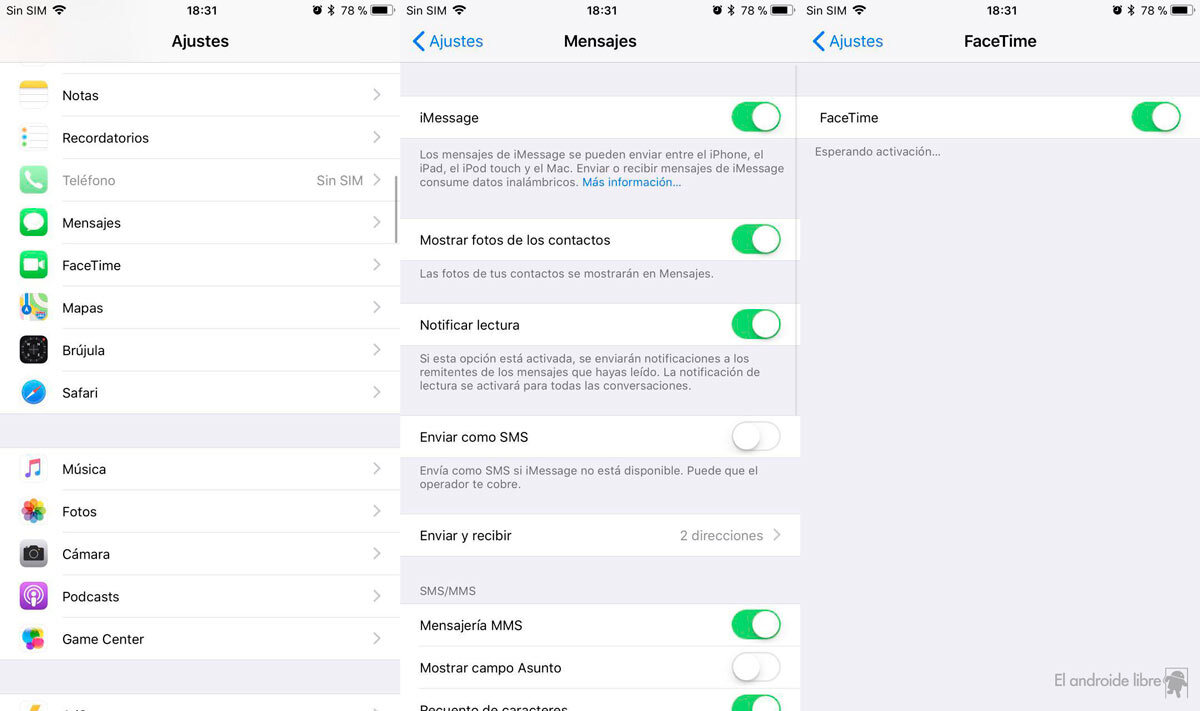 Mensajes se registra con los SMS y también con el servicio de mensajería de Apple, iMessage. De esta manera sus usuarios siempre pueden enviar un mensaje, ya sea a un contacto que no tenga iOS como a uno con Android: el sistema elegirá la mensajería interna o los mensajes de texto en función de si el contacto tiene o no activado el servicio. De ahí que debas desactivarlo antes de abandonar tu viejo iPhone.