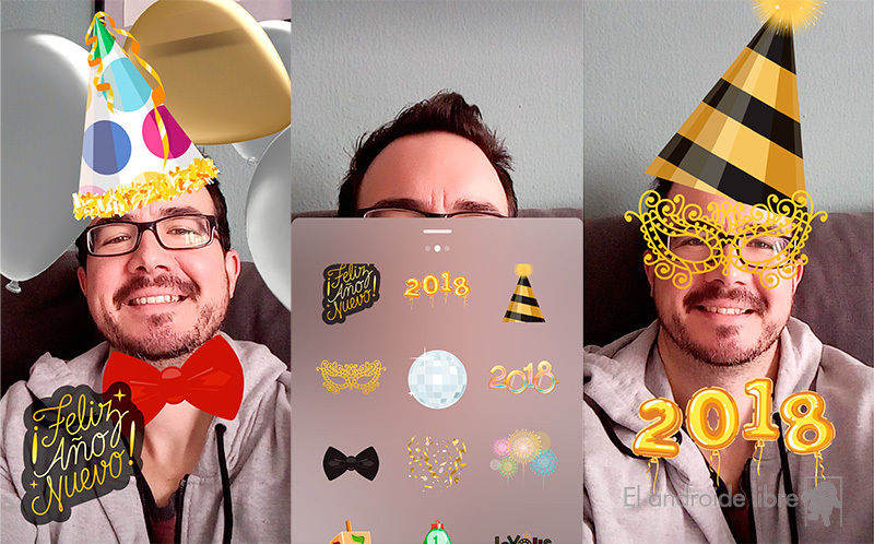 Una vez hecha aplicamos el filtro que queramos, que es opcional, y abrimos los stickers, donde vemos muchos a usar. Tenemos sombreros, el sticker del año, complementos varios… Elegimos la que queramos y en vez de publicarla pulsamos en el botón de guardar, en la esquina inferior izquierda.