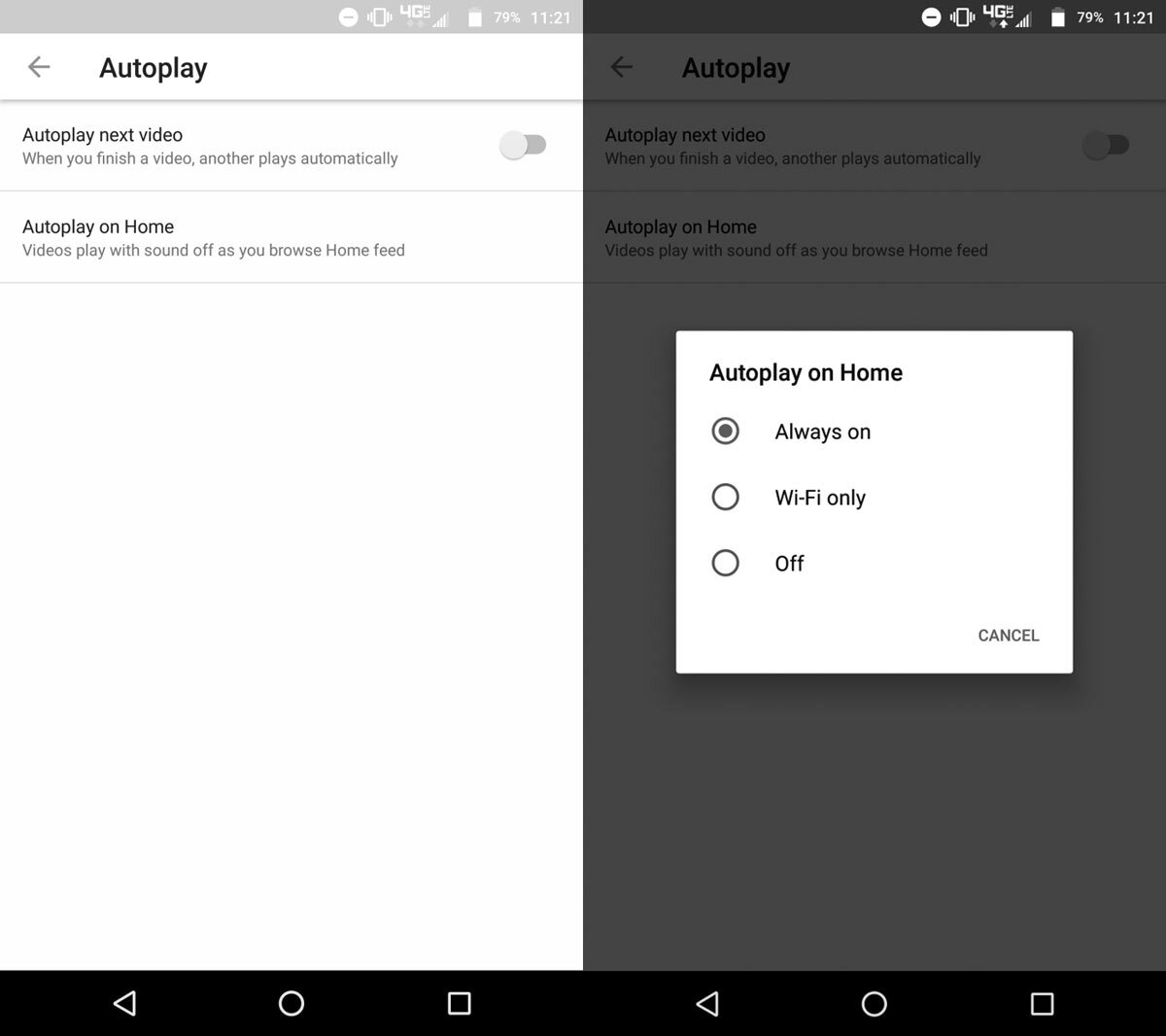 Que los vídeos se reproduzcan solos en la Home no supone ninguna ventaja: quien quiera ver alguno de esos vídeos ya se encargará de darle al botón. Los vídeos siempre se reproducirán sin sonido, eso sí: nada de sustos al entrar en la aplicación de YouTube, al menos mientras no miremos el gasto en MB.