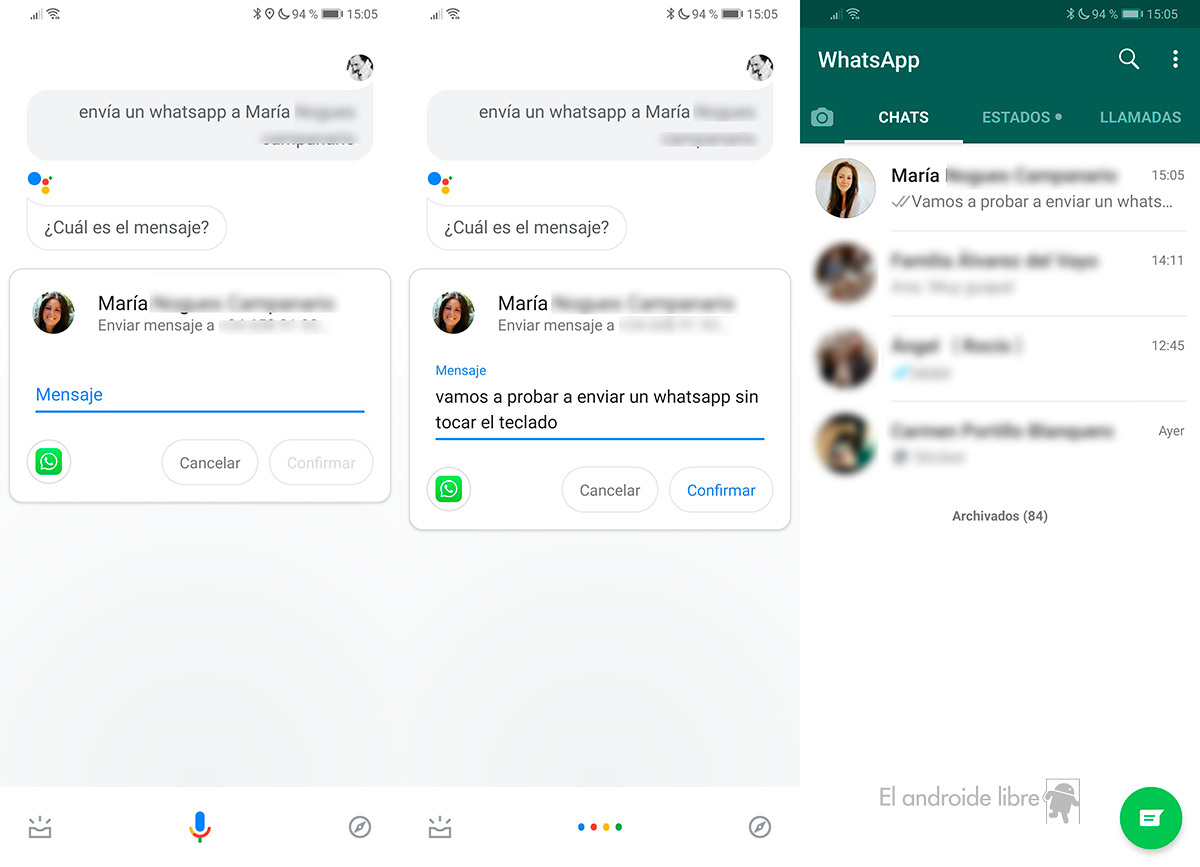 • «OK Google, envía Ya es hora por WhatsApp a María«.