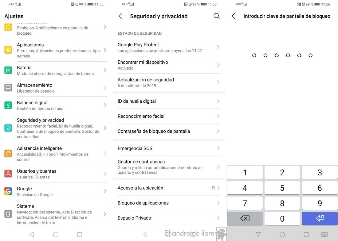Lo bueno es que siempre vas a poder cambiarlo, en caso de que uno de estos métodos no te termine de resultar cómodo. Todos ellos se encuentran en el mismo apartado. Para poder establecer un PIN o la huella dactilar como método de desbloqueo, los pasos a seguir son:
