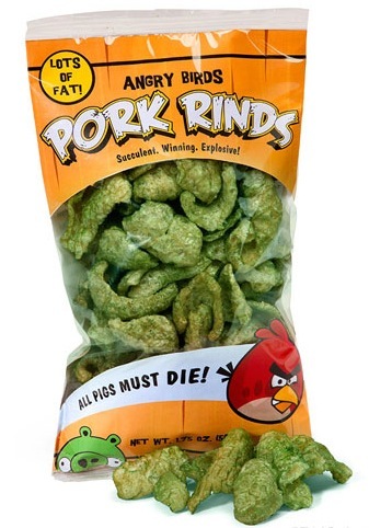 Y siguiendo con los pájaros, os presentamos los torreznos o cortezas de cerdo verdes, recién salidas de Angry Birds, una megafrikada digna de gente con poco tiempo u obsesiones de esas de hacérselas mirar.