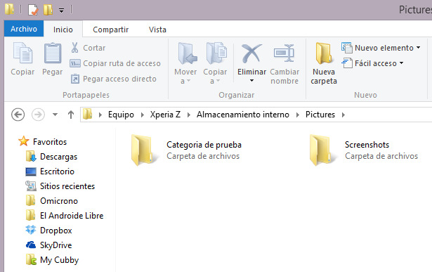 Podemos usar un gestor de archivos de Android, pero yo lo he hecho desde el ordenador. Simplemente conectamos el teléfono mediante USB y accedemos a este con el explorador de archivos. Para obtener nuestra categoría personalizada creamos una nueva carpeta con el nombre que queramos. Podemos hacerlo dentro de una carpeta que ya esté dedicada a fotografías o crear la nuestra propia que se llame «Álbumes personalizados», por ejemplo, para meter allí todos los que creemos.