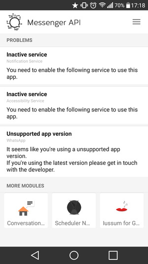 Aunque aparezca el problema de Unsupported app version, yo he probado la aplicación con la última versión beta y he podido mandar el mensaje sin problemas. Así que ya está la aplicación lista para su uso.