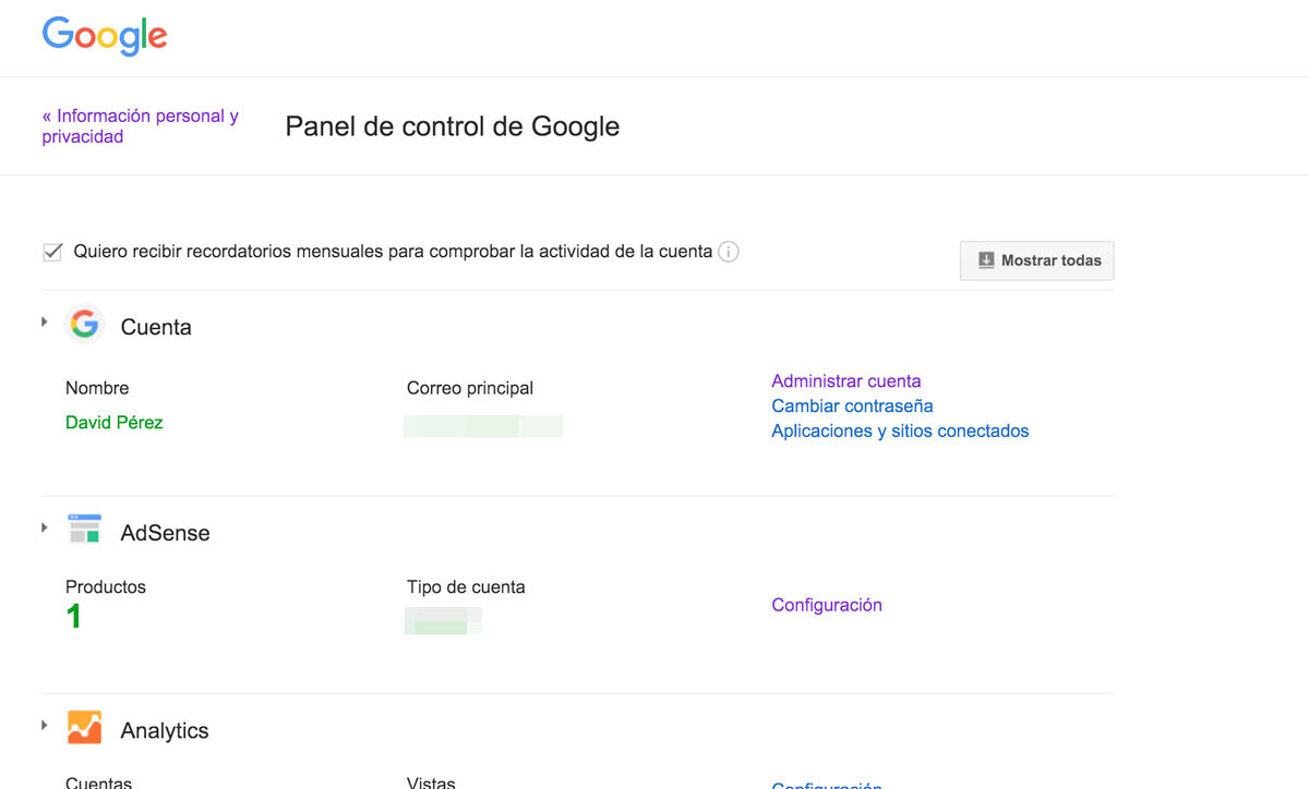 Existe una sección en nuestra cuenta de Google que, como curiosidad y como manera de control, nos permite acceder a todos nuestros datos que maneja nuestra cuenta: os enseñamos qué es el panel de control de Google, cómo acceder, y qué datos podéis ver a través de esta sección.