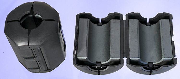 Antes de saber cómo funciona, conozcamos primero qué se esconde en el interior del misterioso cilindro que traen nuestros cables. Si partiéramos este cilindro por la mitad, lo que encontraríamos en su interior sería una capa más o menos gruesa (depende del dispositivo para el que se haya diseñado el cable) de ferrita. La ferrita, para no entretenernos con palabras técnicas, es un material que procede principalmente del hierro (también participan en su composición el magnesio y el zinc).
