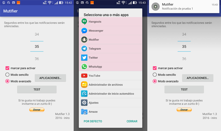 Si queréis saber cómo poner en marcha Mutifier para probar su funcionamiento con las notificaciones en grupo de WhatsApp, Telegram o Hangouts (puede ser cualquier otra aplicación, sea o no de mensajería instantánea), seguid estos pasos:
