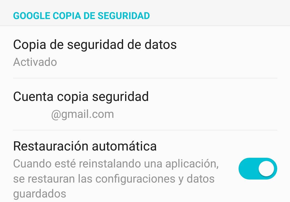 • Comprueba que la copia de seguridad de Google está activada para tu cuenta de Google.