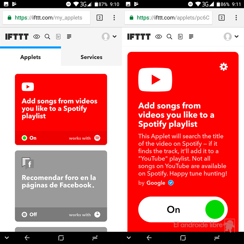 Para ello he recurrido a uno de los servicios más versátiles que hay en Internet, IFTTT, donde la propia Google ha creado una receta que nos permite crear una lista según los vídeo que queramos de Youtube.