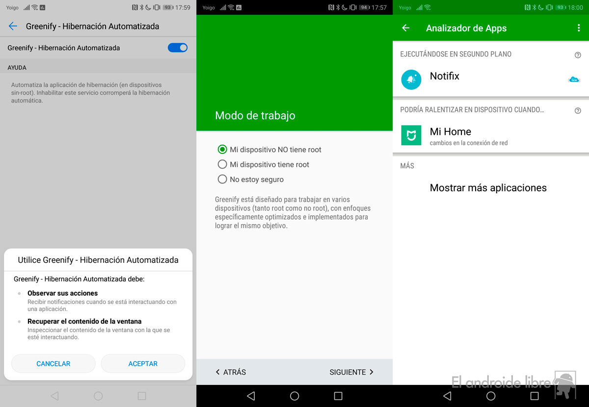Greenify no necesita acceso ROOT para su funcionamiento básico, pero aquí tendremos un inconveniente: en el modo sin rootear no dispondremos de «autohibernación». Pero podremos colocar un botón en el escritorio para hibernar manualmente, que tampoco es mala solución.
