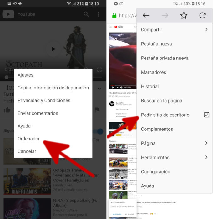 La clave de este truco está en usar la web de Youtube en vez de la app oficial, y funciona tanto en Chrome como en Firefox. Gracias a una función de esos navegadores que normalmente no usamos, podemos obligar a reproducir vídeos en segundo plano.