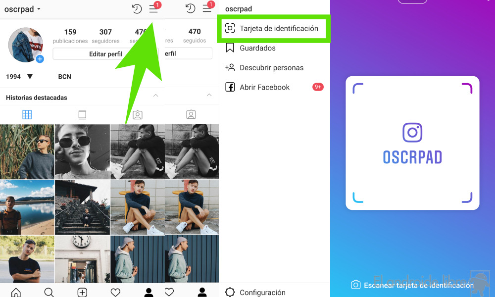 • Dirígete a los ajustes de tu perfil -> pulsa en el icono en forma de lista de la esquina superior derecha-> tarjeta de identificación