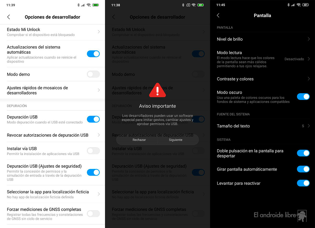 • Cuando las activemos, entramos en esas opciones y activamos Depuración USB y Depuración USB (Ajustes de seguridad).