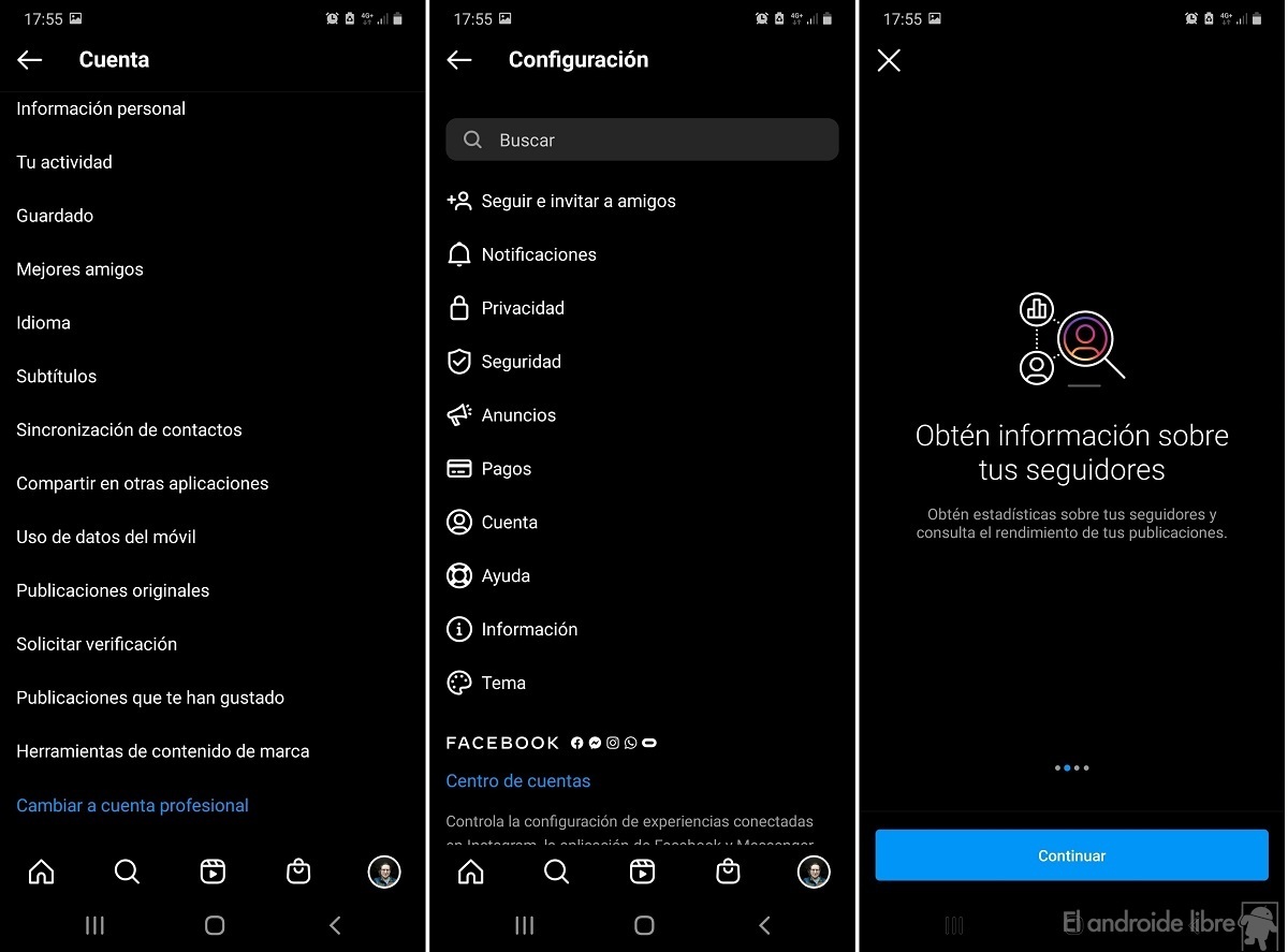 Si quieres pasar de una cuenta normal a una cuenta profesional en Instagram, estos son los pasos que tienes que seguir en la app en Android.