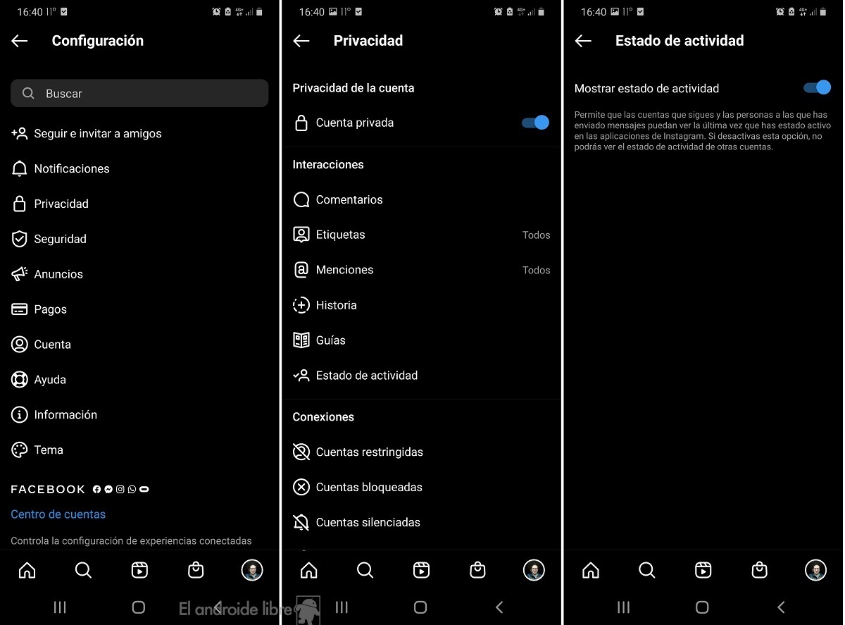 Si en algún momento cambias de idea y deseas que tu estado sea visible de nuevo, tendrás que realizar los mismos pasos que hemos mostrado, solo que ahora tendrás que activar el interruptor. De esta manera volverás a mostrar tu estado de actividad en la aplicación.