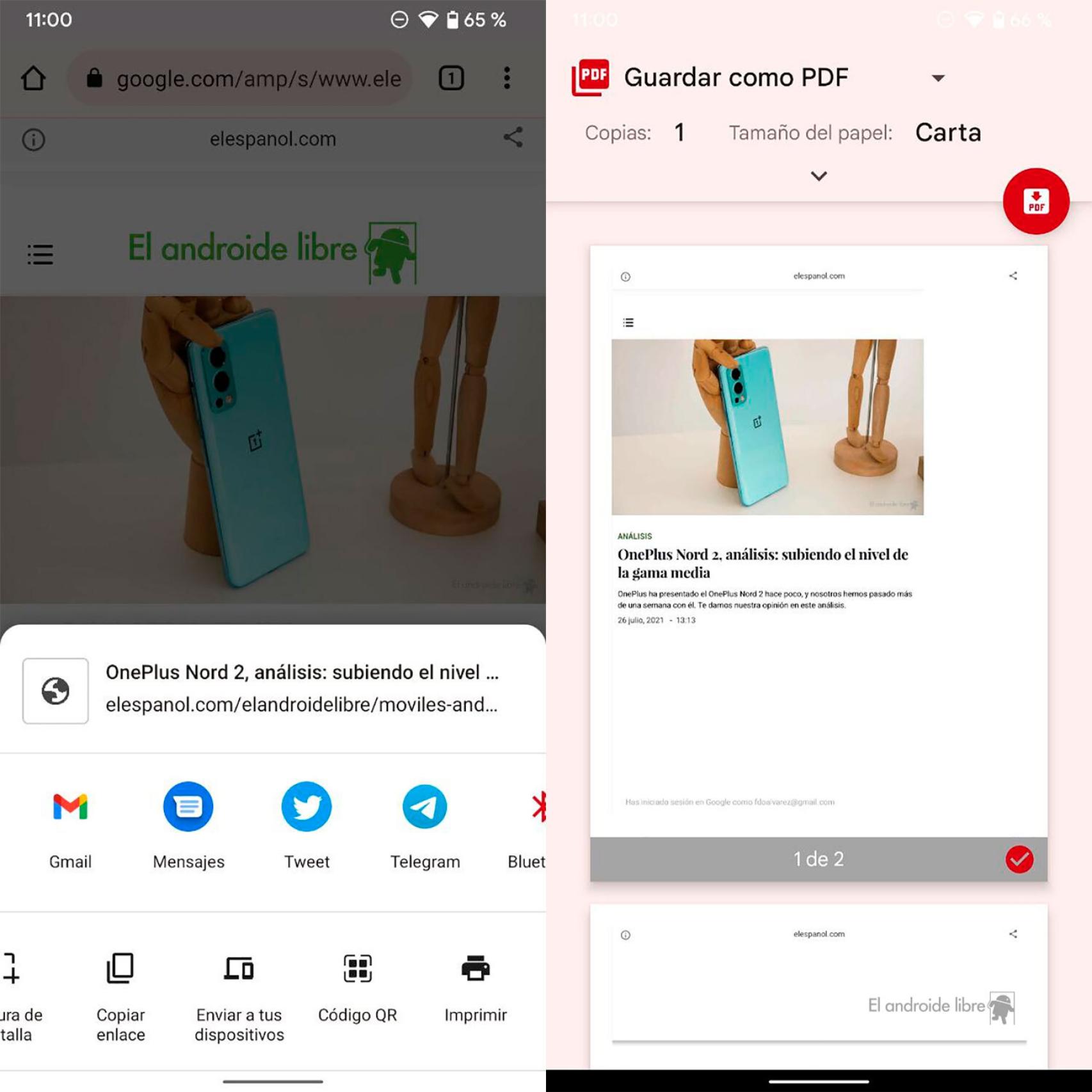 Para ello podemos usar una opción presente en Android pero que poca gente conoce, imprimir un PDF.