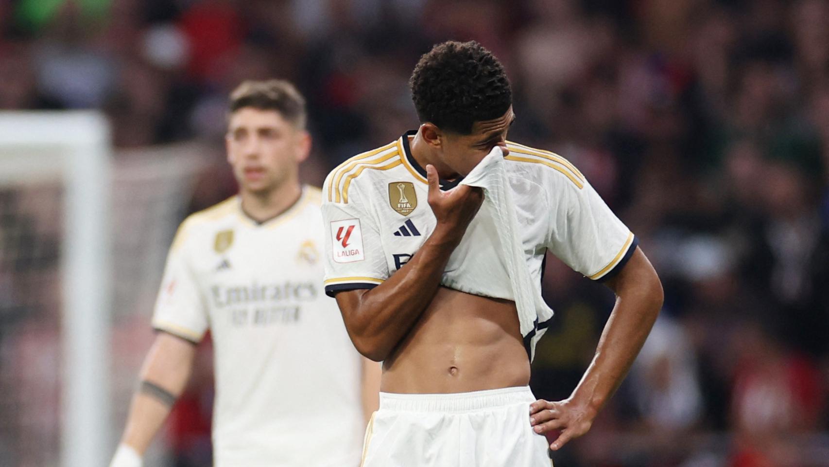 Los jugadores del Real Madrid calientan en el Metropolitano