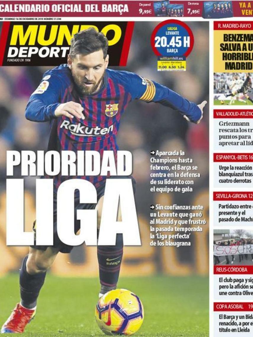 - La portada del diario Mundo Deportivo (14/12/2018)