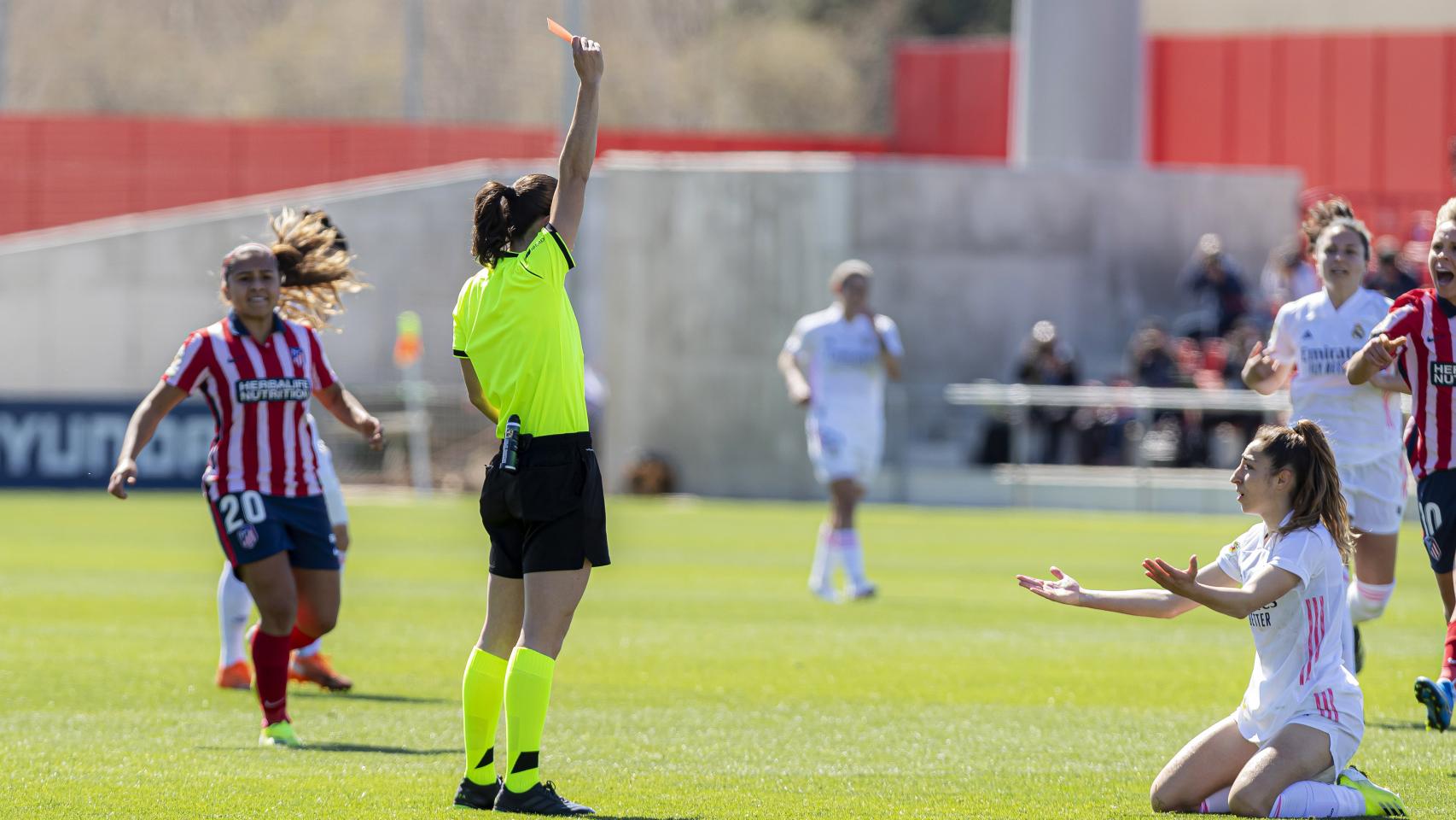 Marta Cardona consuela a Olga Carmona tras su expulsión en el derbi