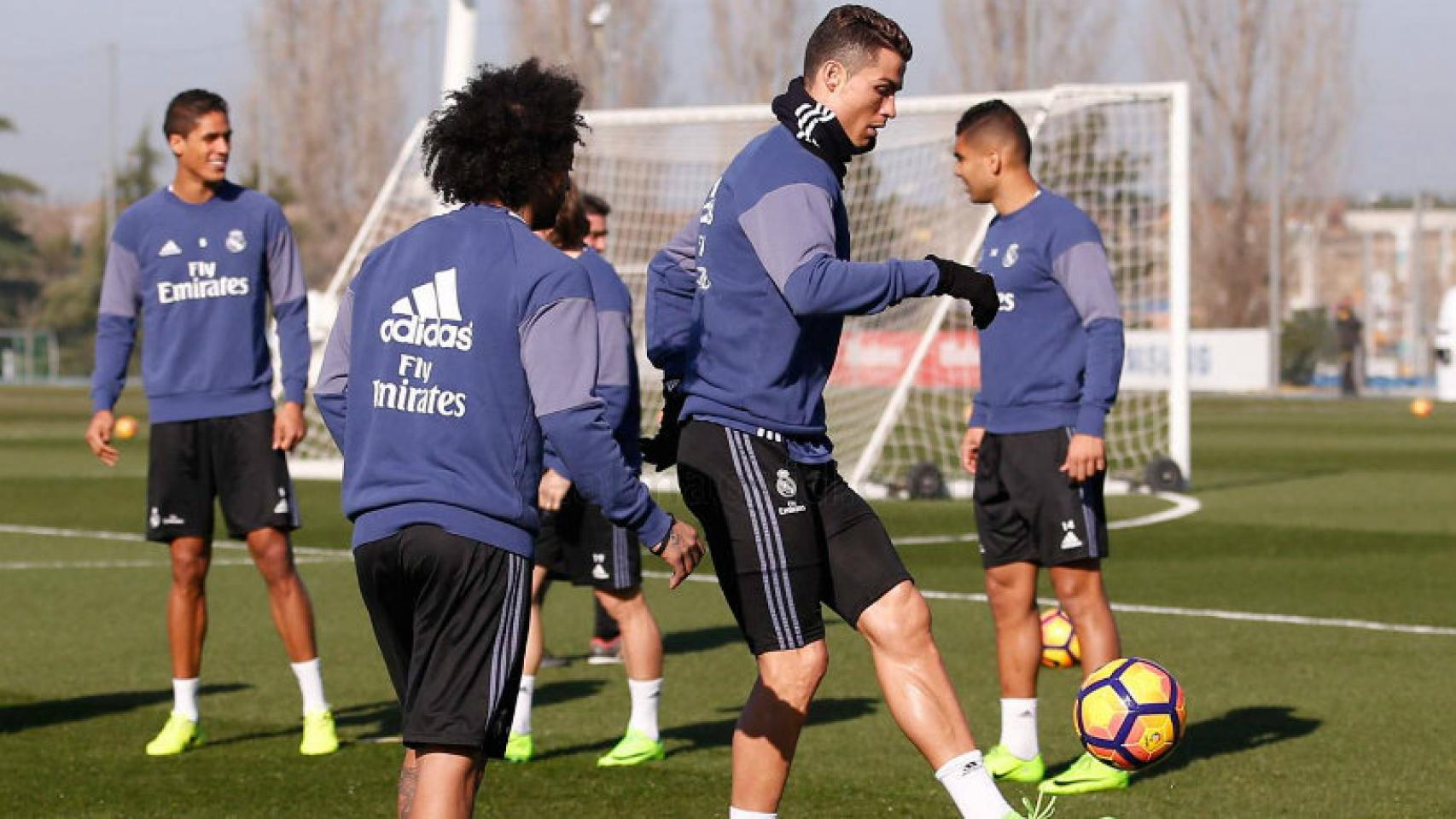 La plantilla del Real Madrid en el entrenamiento ante el Espanyol