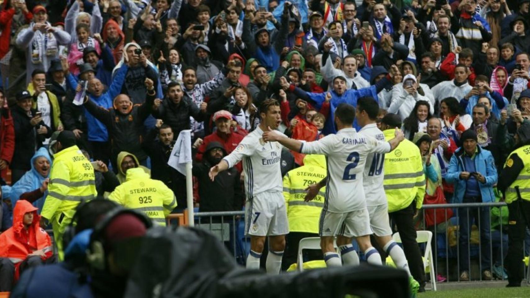 Cristiano lo celebra con la grada. Fotógrafo: Manu Laya / El Bernabéu