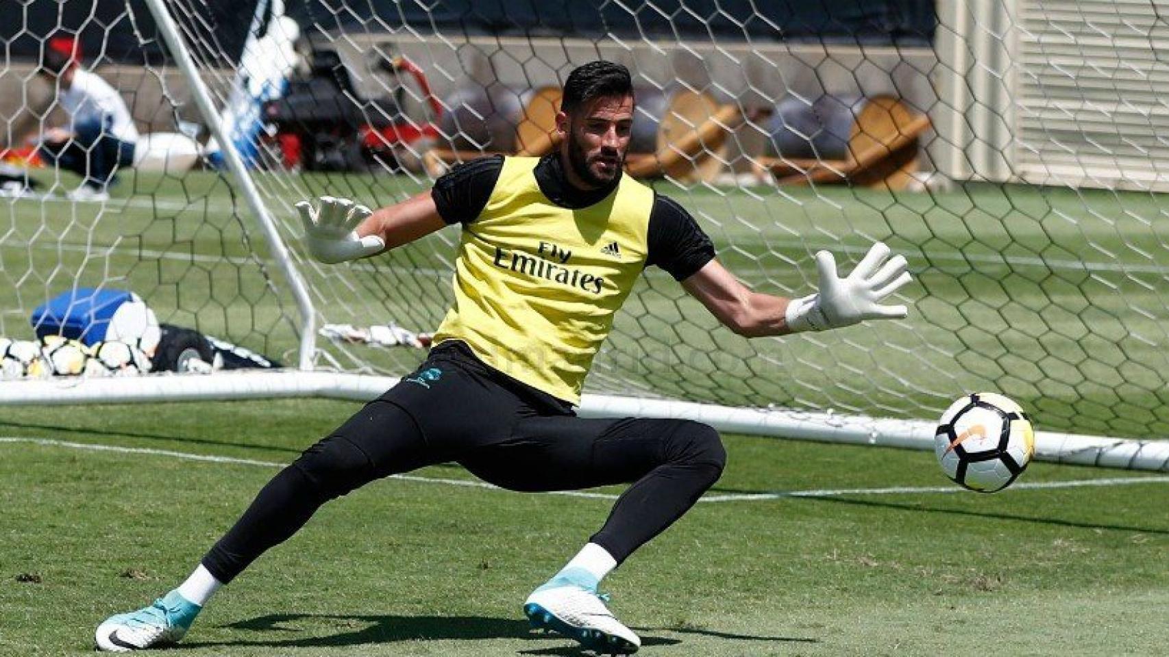 Keylor Navas lanza el balón ante la mirada de Isco.