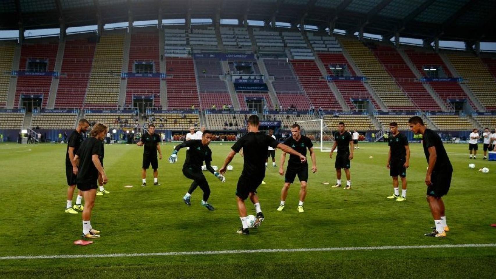 Rondo de los jugadores del Real Madrid en el entrenamiento previo de la Supercopa de Europa